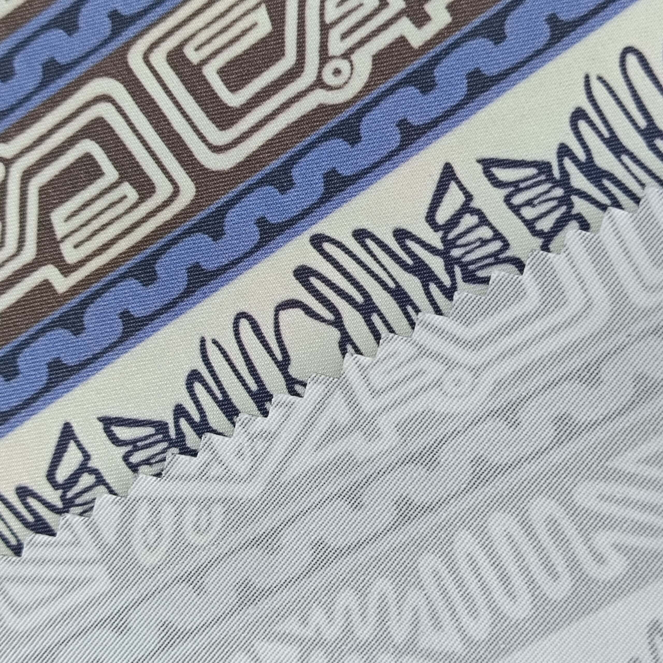 A diagonal twill printed fabric that combines the advantages of cotton and polyester, featuring excellent dyeability, durability, wrinkle resistance, and long-lasting suitability for clothing production.